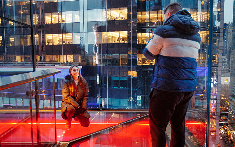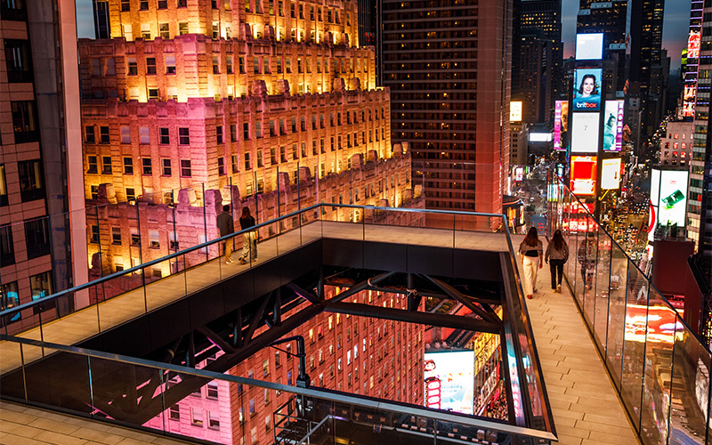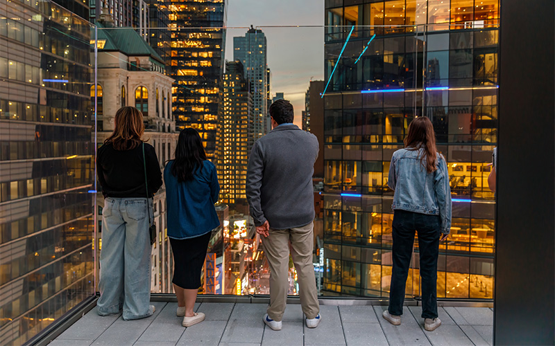 Sé de los primeros en experimentar Times Square como nunca antes con las vistas desde el mirador del piso 19. Tu aventura comienza con un impresionante viaje en ascensor de cristal que te lleva al mirador panorámico de 360 grados, situado en lo alto de Times Square, ofreciendo vistas impresionantes de Manhattan y el horizonte de la ciudad, desde el río Hudson hasta el East River.